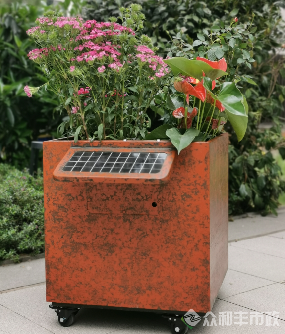 免人工花箱是成都智慧花箱厂家的一大创新亮点。通过内置的智能系统,这些花箱能够自主监测土壤湿度、温度等环境参数,并根据植物的实际需求进行自动浇水和施肥。这种自动化管理方式大大减少了对人工维护的依赖,使得城市绿化变得更加轻松和高效。对于城市管理者来说,这不仅节省了人力资源,也显著降低了维护成本。